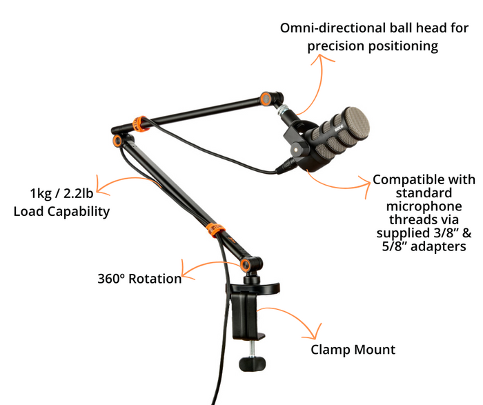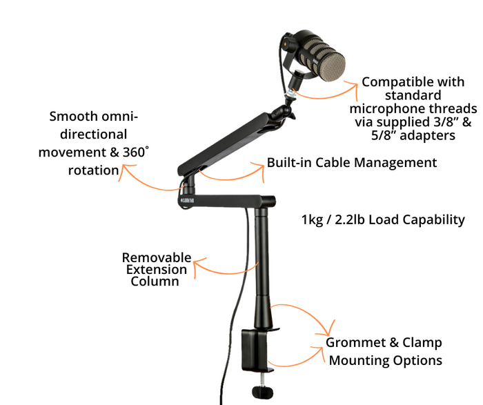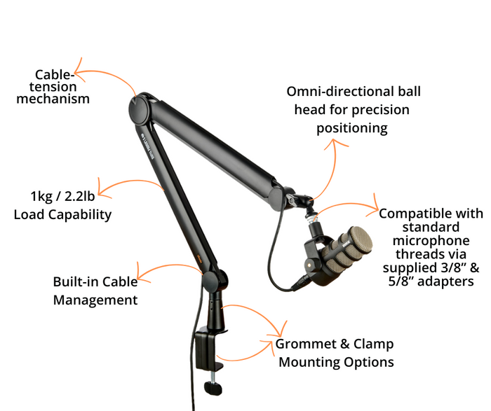 A range of microphone arms for broadcast, streaming, podcasting, YouTube, and more!