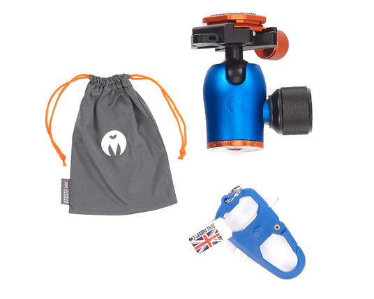 The AirHed Pro features a knurled knob which is used to control the ballhead. The ball can be tightened into a variety of positions, and the entire head can be rotated 360 ̊ on its base. The copper control knob tightens the clamp, so users can ensure their camera is held securely in place. The head features a bubble level, ensuring pictures are all perfectly aligned.